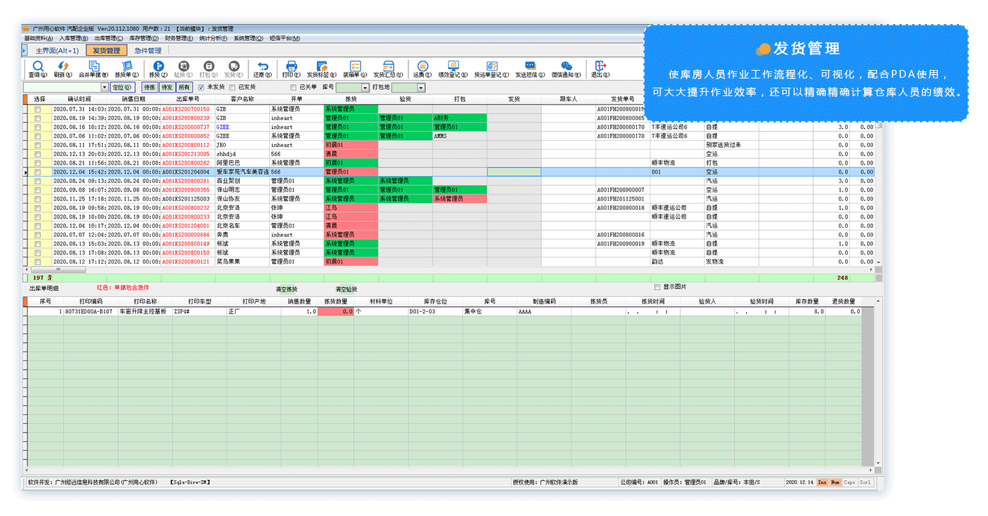 全程PDA扫码操作,支持扫描货物、 仓位、单据、箱号,无需人工大脑记忆。