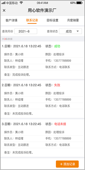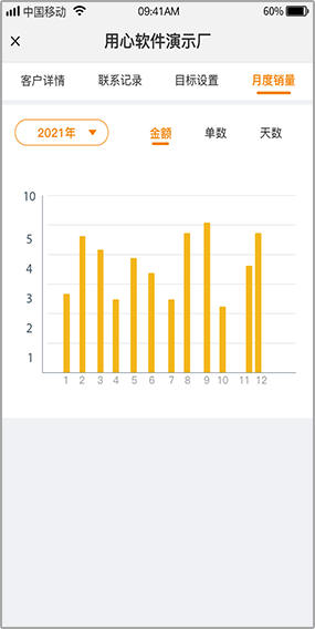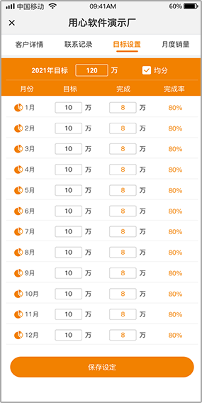 集成目标管理和客户分析两大模块,对公司内部实行目标管理,客户分析,让老板更了解公司销售概况,让销售员随时掌握销售业绩, 加强和客户的沟通。